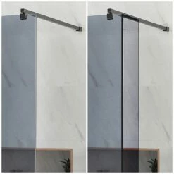 Sure to make a statement in your bathroom, this walk-in shower features smoked glass with an 8mm thickness, ensuring excellent strength and creating a luxury feel. The glass panel measures 1950mm in height to help contain more shower splashes. The black profile and support arm further enhances the design of the walk-in shower.