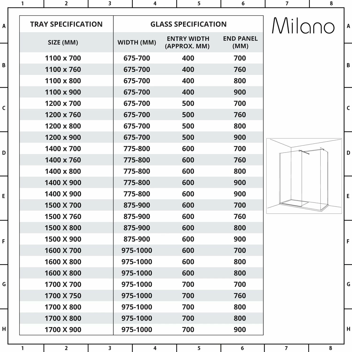 The walk-in shower includes a choice of tray size – just select your desired size from the options above and we’ll do the rest.