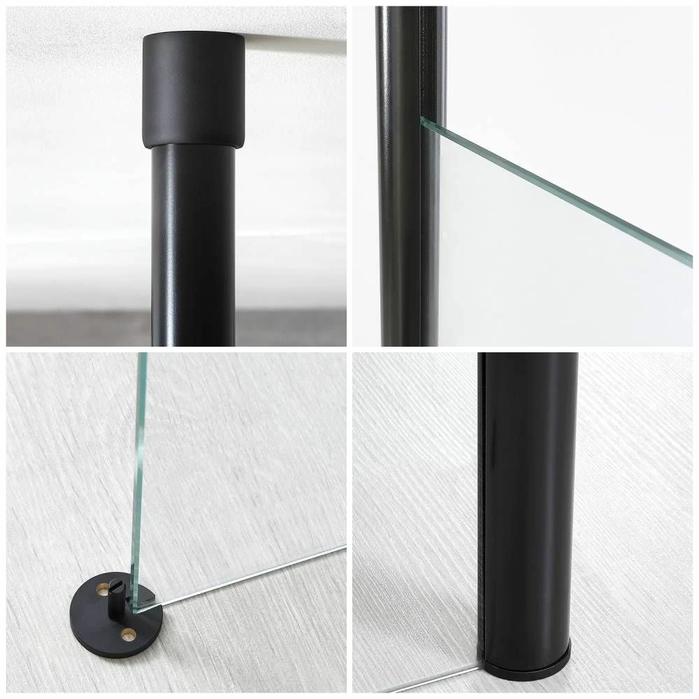 - Floor-to-ceiling pole supports the glass screen