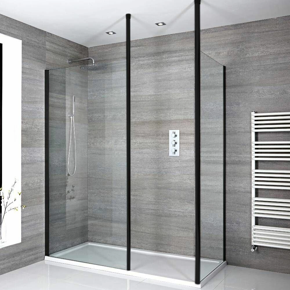 - Milano Nero – Wet Room Glass Screen with Black Profile x2