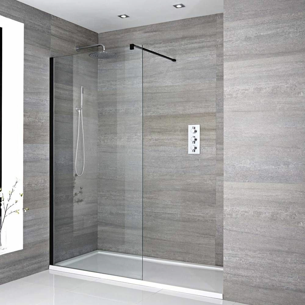 Measuring 1950mm in height to catch more splashes, the walk-in shower features 8mm toughened safety glass. The black profile creates a designer look.
