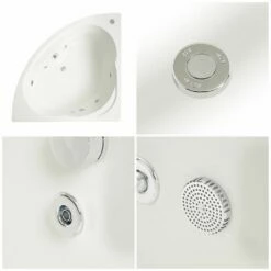 This robust and sturdy whirlpool spa bath features a space-saving corner design and has a 218 litre capacity for a luxurious and indulgent bathing experience. It is resistant to everyday wear and tear, giving you a bath that will look like new for many years.