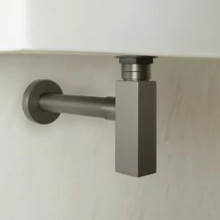 The Milano Orno gun metal grey bottle trap has been designed for use with basins with an exposed trap, such as washstand basins and wall-mounted basins.
