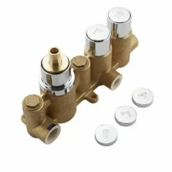 Made from solid brass to ensure great durability, this shower valve features easy to use push button controls and a brilliant chrome finish. The shower valve is supplied with five separate push buttons, each etched with a different image, for example, a shower head, shower blade, handset, bath spout and body jets. This allows you to match the configuration of your shower.