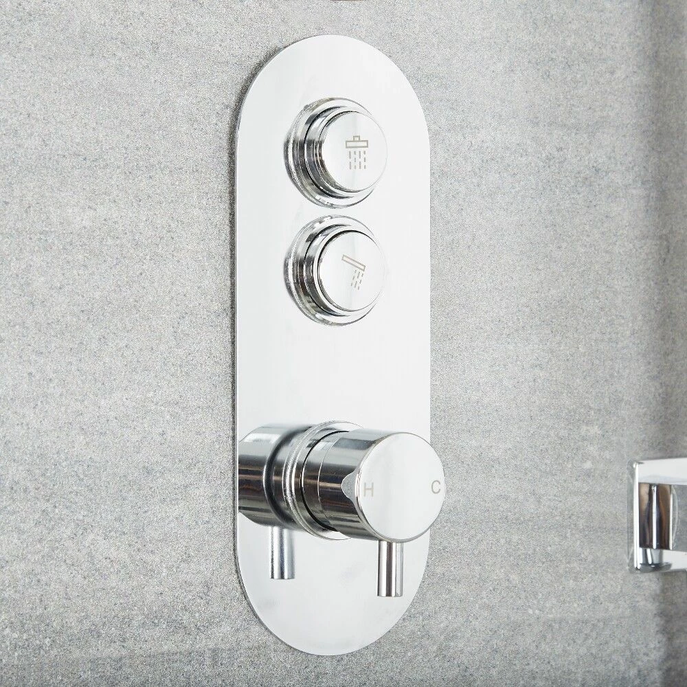 The thermostatic shower valve supplies water to two shower outlets such as a fixed shower head and handset. It incorporates anti-scald technology to ensure a safe and comfortable showering experience every time.