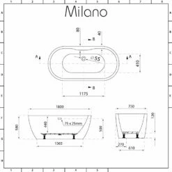 Featuring a desirable oval shape and a contemporary design, the Milano Overton 1800mm x 750mm double ended freestanding bath will bring a stunning centrepiece to your bathroom.