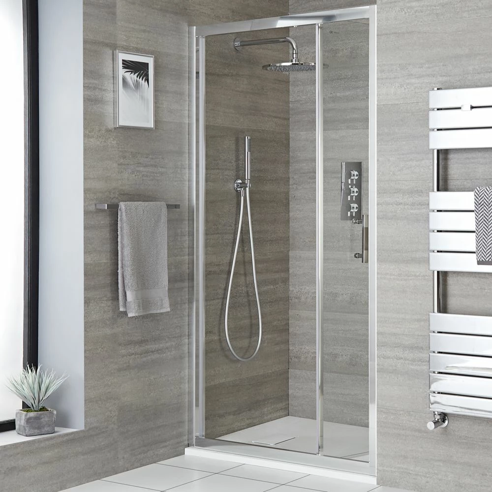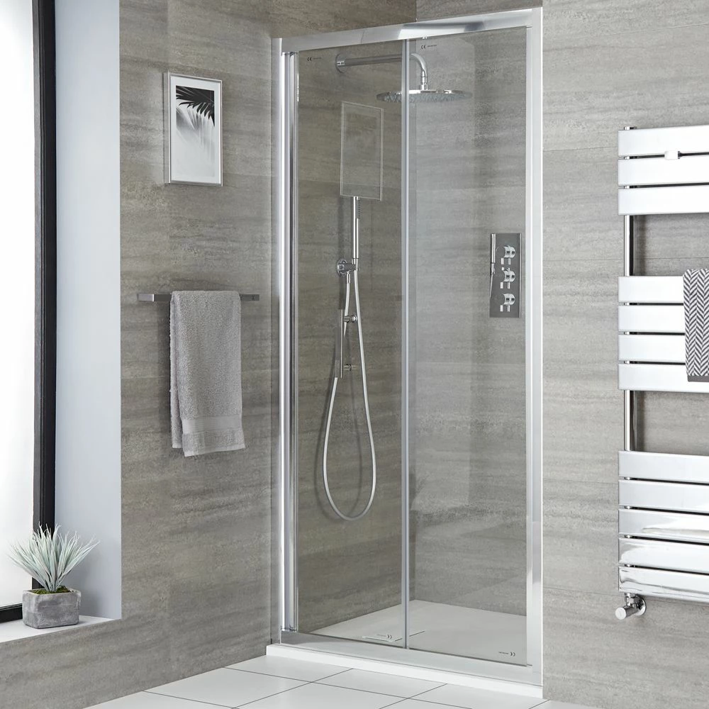 The tough and durable bi-fold shower door will withstand the rigours of daily use. Measuring 1850mm high, the shower door features toughened safety glass for superb strength.