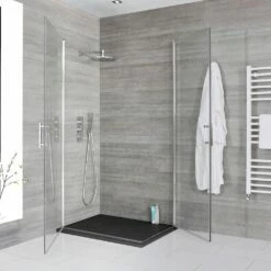 The lightweight yet durable shower tray has a slate effect finish for a natural feel and measures just 30mm high for a streamlined look and easier shower access.