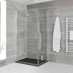 The Portland double shower door enclosure comes in a choice of sizes to ensure a perfect fit for your bathroom, while the slate tray is available in anthracite, white and light grey finishes – just make your selection from the options above.
