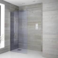 Providing easy shower access, this wet room shower uses smoked glass with an 8mm thickness, creating a stunning look and ensuring excellent strength. The glass panel measures 1950mm in height, helping to contain more shower splashes.