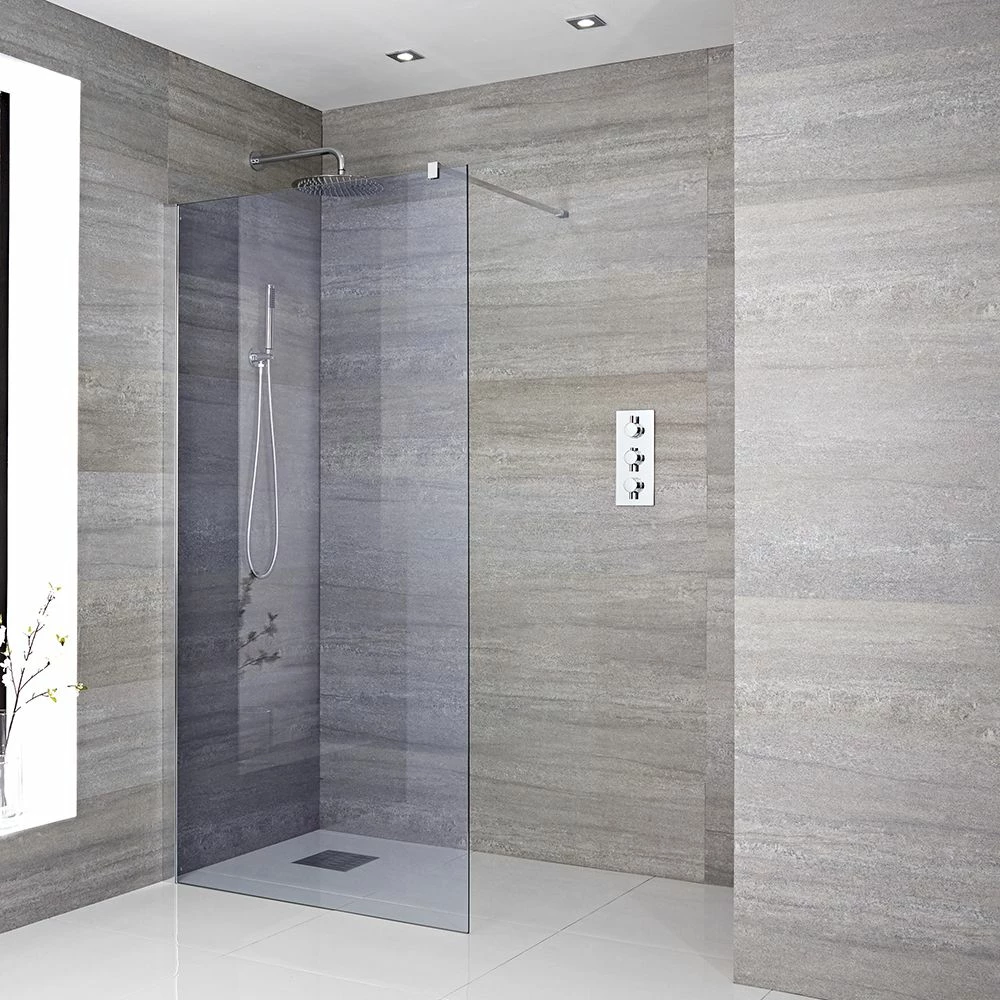 - Milano Portland-Luna – Smoked Wet Room Glass Screen with Chrome Profile