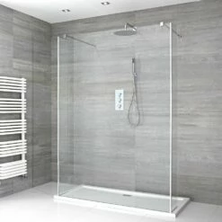 A stunning focal point for your bathroom, this open shower has a central glass screen with an 8mm thickness for excellent strength and a luxury feel. The glass panel measures 1950mm in height and is securely stabilised by the two chrome support arms.