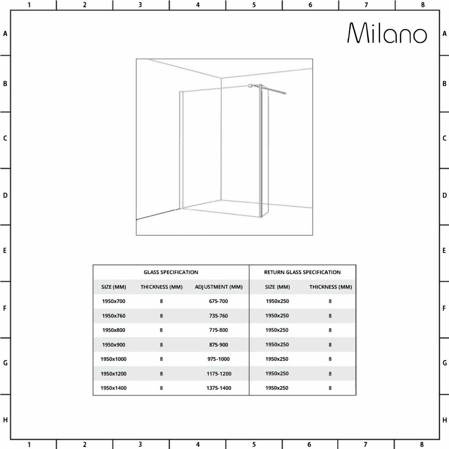 Give your bathroom an upgrade and create a contemporary showering space with the Milano Portland wet room shower enclosure, complete with glass screen, hinged return panel and stainless steel drain.
