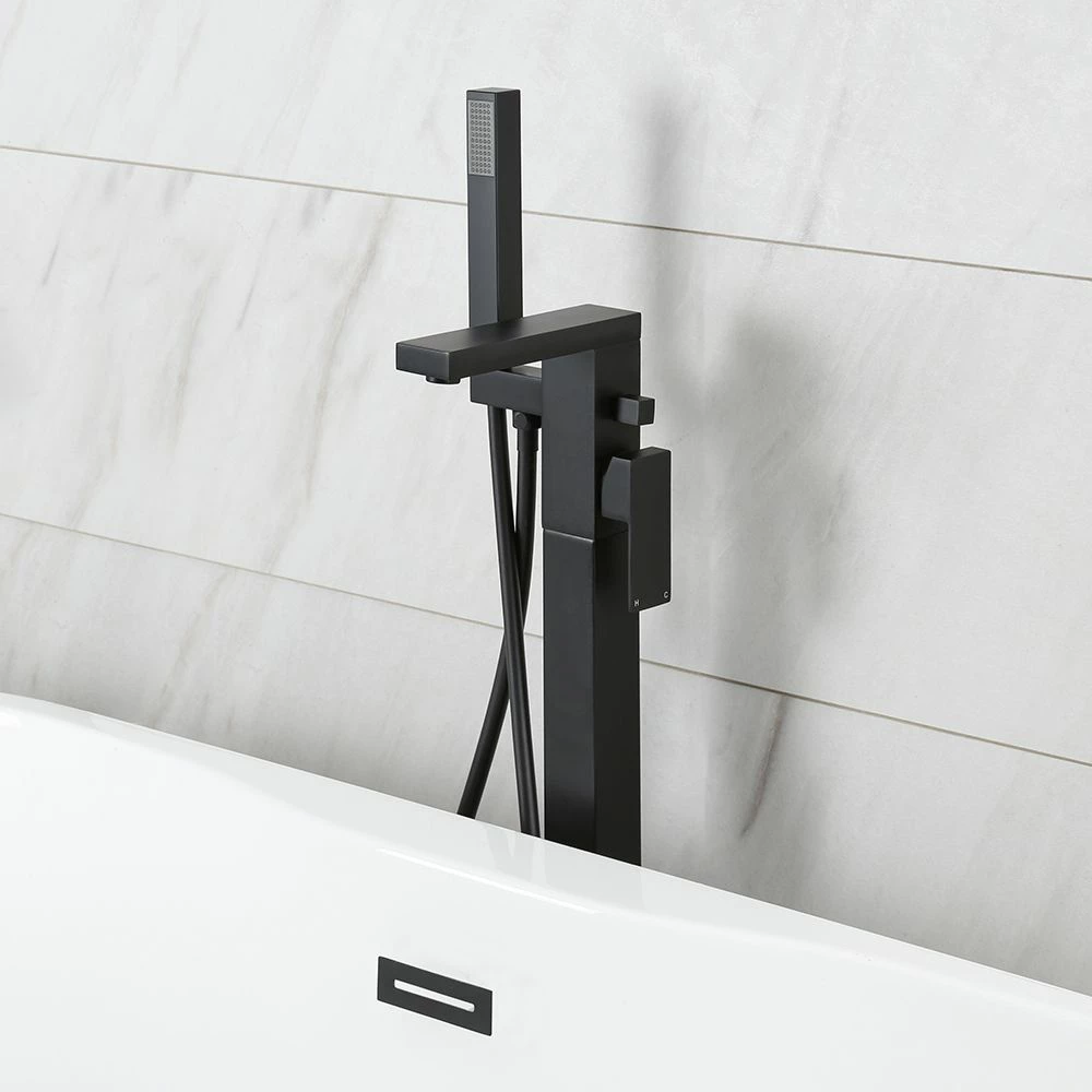 Bring a touch of luxury designer style to your bathroom with the Milano Preto modern matt black freestanding bath shower mixer tap, complete with hand shower and hose.