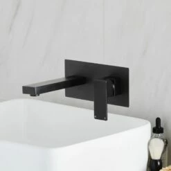 The Milano Preto modern matt black wall-mounted basin mixer tap is sure to bring sleek, designer style to your bathroom.
