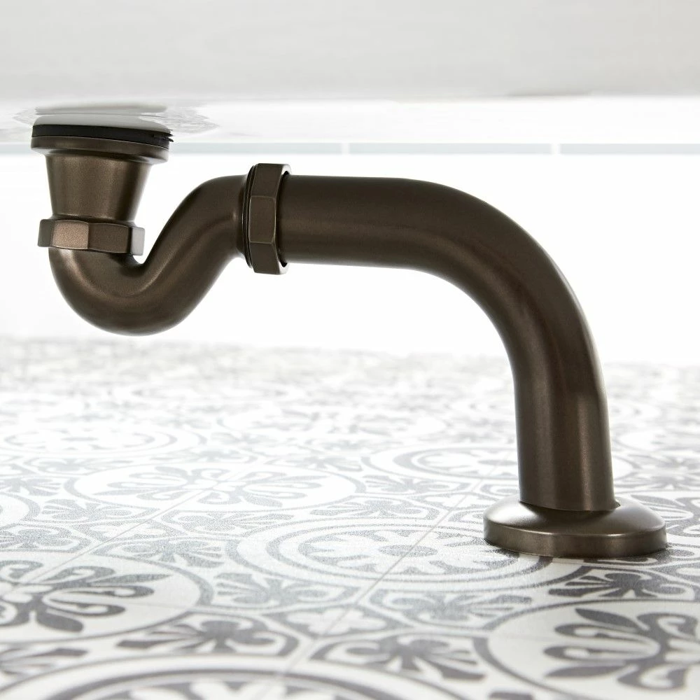 Featuring a hard-wearing oil rubbed bronze finish, the Milano Rosso shallow seal bath trap and outlet pipe is designed for use with freestanding baths where the pipework is visible. Made from solid brass, the bath trap and outlet pipe creates a neat and tidy appearance to the pipework.