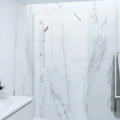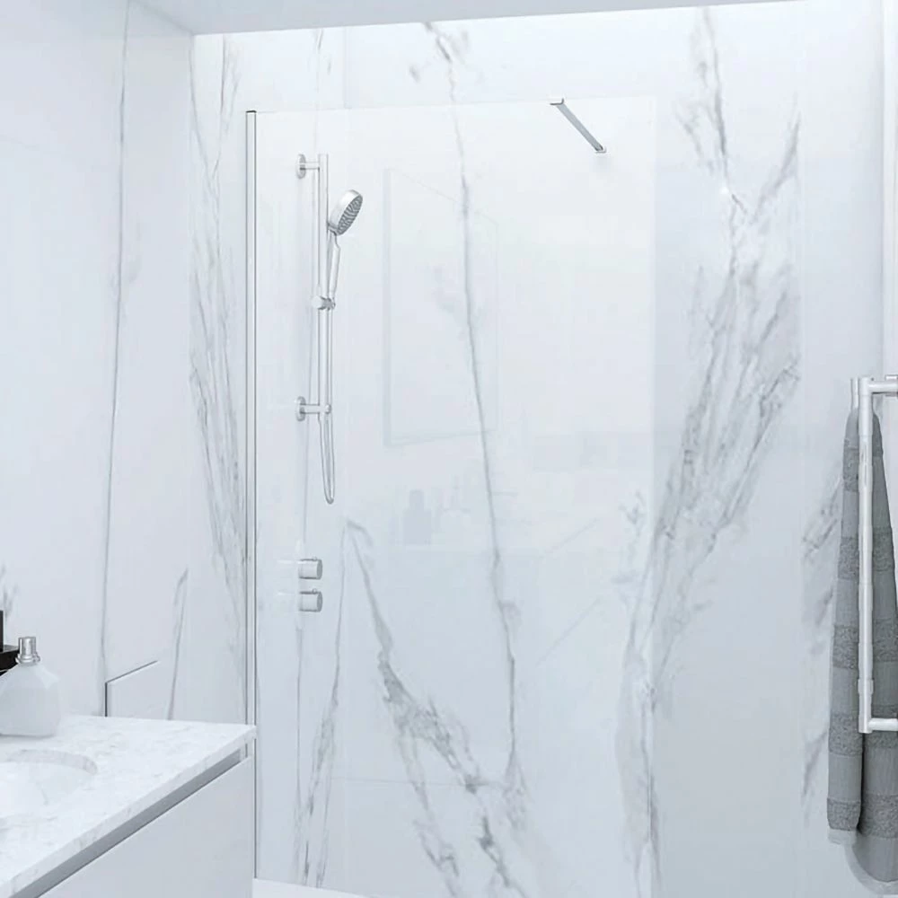 This walk-in shower uses 8mm toughened glass for superb strength and a luxury feel. The glass panel has a height of 2000mm and features a matt white profile for a minimal and modern look.