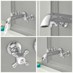 Milano Elizabeth – Traditional Wall Mounted 3 Tap-Hole Crosshead Bath Filler Tap – Chrome And White